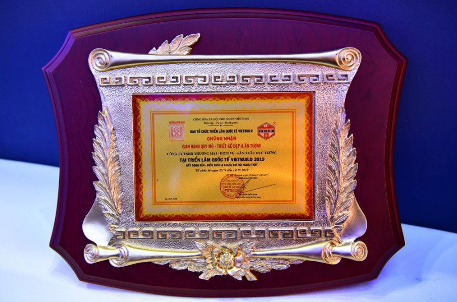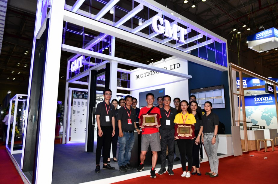 虽然GMT的展位不是最大的,也不是最高的,但凭借出众的设计,GMT展台迅速成为本届展会的“网红”,各界朋友及客户络绎不绝。这下好了,GMT想低调都难,经过组委会的多次参观及评定,GMT荣获了2019越南建筑展“最佳设计展位”的称号。这可能是越南建筑展几十年来,获得此称号面积最小的展位了。